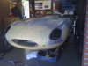 As we arrive at the Castle there are a lot of E-Types. When we meet the organizer we immediately are invited tj join the day and breakfast with al the others. It's no problem that we are not with the E-Type. That's nice!!Marvelous surroundings, nice weather, E-Types....What more do we want? We pass the French border and when we take a lunch together. The tour ends in Luxembourg. That's were we say goodbye as they go to their hotel and we leave to go home. Saterday june 28 2003: Today we will try to get the motor out of the car. It's not easy to do so. Friday july 18th 2003: The car is partly stripped and the parts are cleaned. Sunday july 20th 2003: This whole weekend we cleaned the car with paraffin. All the cleaned parts we store in the barn where we made a big rack. The chromium parts has to be done now, but I think most of it must be chromium-plated again. Sunday july 27th 2003: Unfortunately the result of polishing the chromium parts is a bit of a disappointment. Thursday september 25th 2003: Untill now the stripping of the car is in a advanced stage. The dashboard is dismantled, also the rest of the interior. What's left is the fuel- and brake line, petrol tank with pump and the independent rear suspension. The back of the dashboardpanel and it's clocks are very rusted!! Probable something causes a short-circuit behind the dashboardpanel and they put it out with water. I got the complete wiring out of the car which was a big kind of job. Saturday january 3th 2004: Today I drained the fuel tank. First I thought the tank was completely full (65 ltr) with fuel but there only came out about 8 ltr. Meanwhile I'm looking for a good paintshop because I will finish the bodywork this year. Saturday january 10th 2004: This weekend there was the MECC Interclassics in Maastricht(Netherlands). This year's theme was Jaguar!!.
