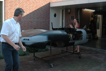 I started to blast the car to romove some rust. It is quite an aventure. It costs me three days. But now the bulkhead and dashboard is blasted (see photograph). In the meanwhile the painter, has take look and told me to get rid of still a couple asperities and then can I make an appointment.December 2007: Before spraying the car i have to see if the frame fits. It takes some effort, but is fits. Even the frontwheel framework incl. the torsiebar sit on its spot. This also applies to the stabilizer rod and the frontwheel suspention. What remains now is the bonnet. See next month what I do. May 2008 ![]()